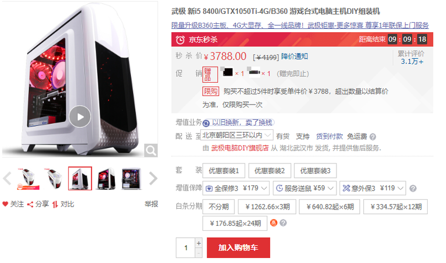 武极 i5 8400/GTX1050Ti-4G/B360 游戏台式电脑主机 京东参考价3799元