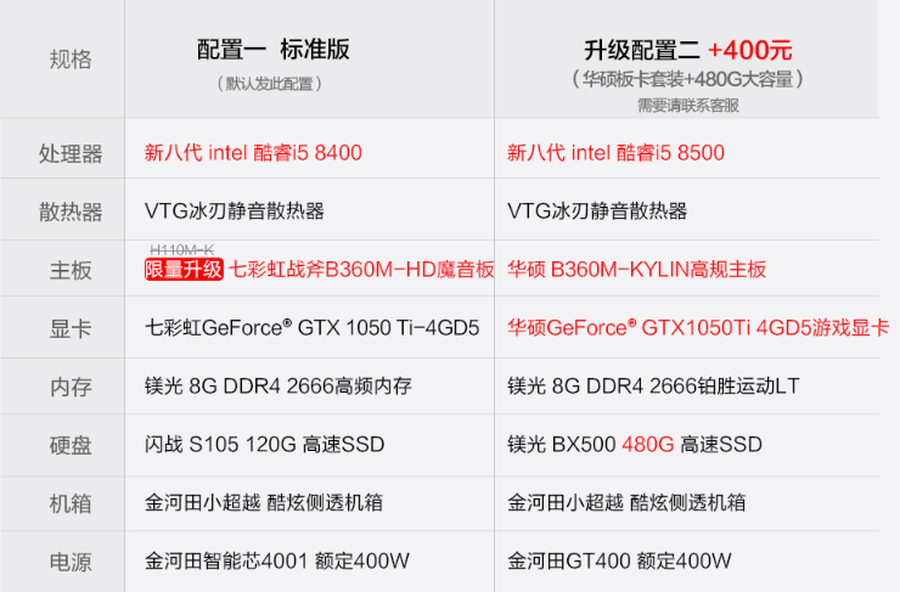 这款主机目前还有其他配置可选,大家可自主选择需要升级的部件,目前这款电脑前200名下单还将免费将硬盘升级为镁光BX500 240G高速SSD固态硬盘。