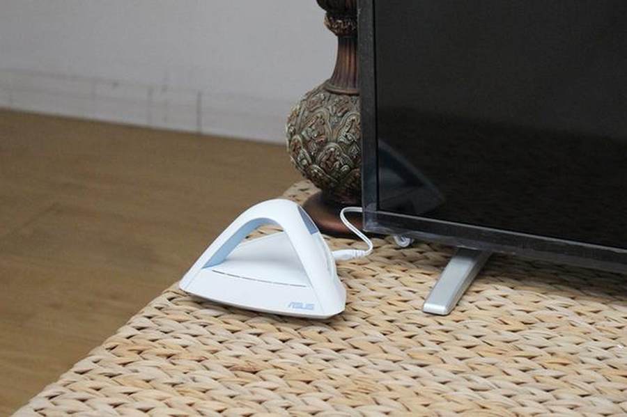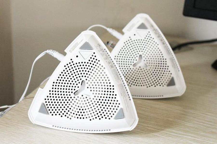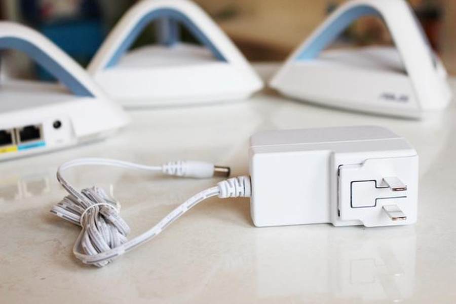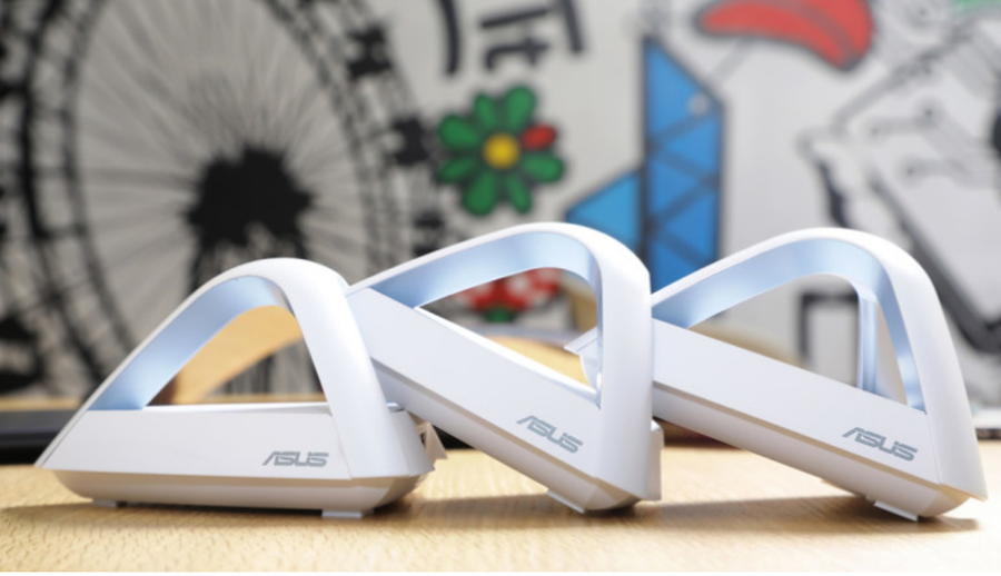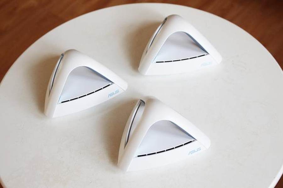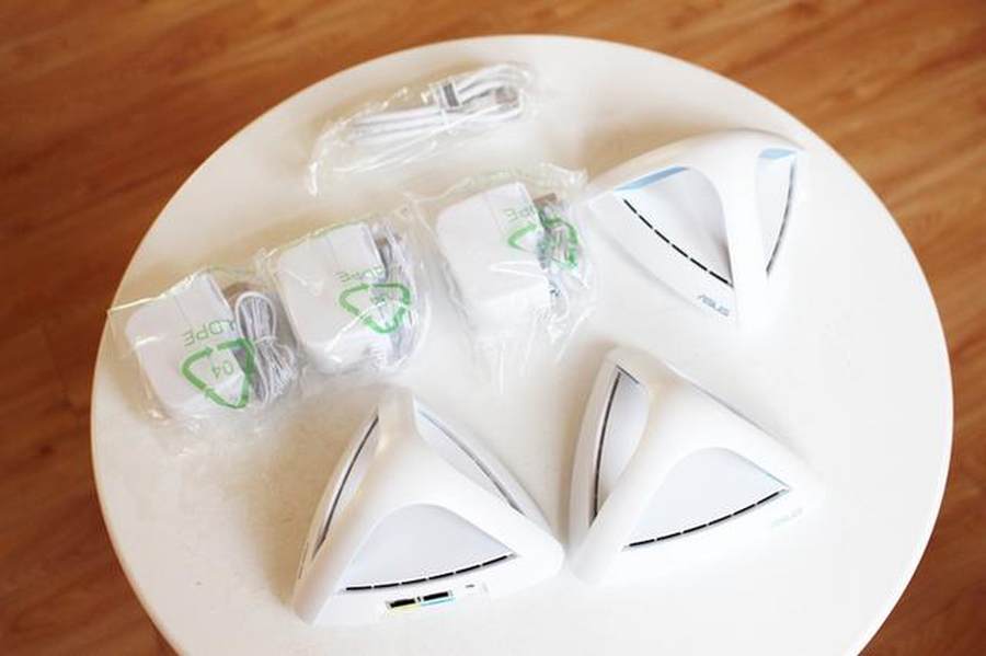 华硕的这款Lyra Trio路由器有着超高的颜值,三台路由器配着3只电源,摆了满满的摆了一桌。