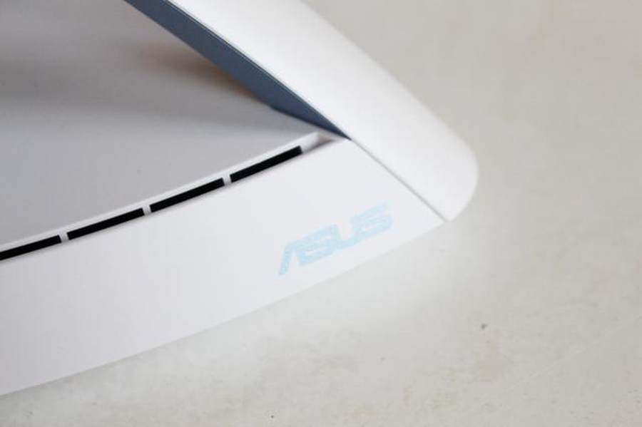 路由器边角上的华硕LOGO,看到华硕的LOGO以这种蓝色的字体在家居路由器产品上,效果也蛮不错。