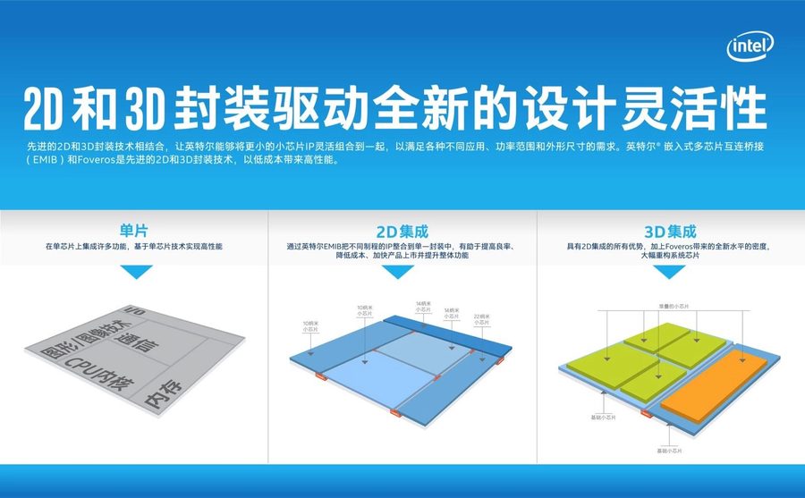 1. 制程——拥有领先的制程技术,仍是建构领先的产品之关键。先进的封装解决方案在三维空间中扩展晶体管密度,将赋予英特尔指数级提升计算密度的能力。
