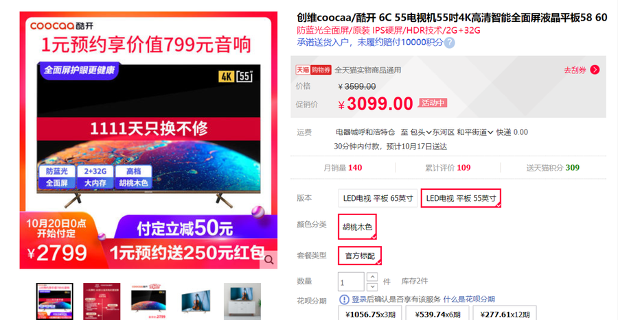 防蓝光应该是最大的卖点,这个价位酷开的竞品不多。6C是9月推出的最新品,价格也优惠,Cortex A73处理器加32G存储很有竞争力。4K视频看起来很养眼,HDR明暗对比也清晰。