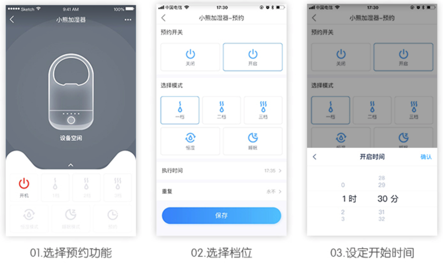 而在智能方面,天猫精灵定制小熊智能加湿器则更加强大。上述的功能均可通过手机APP来远程控制,即使你不在家中,依然可以通过手机远程控制加湿器的工作模式。值得一提的是,你还可以通过手机APP中的预约功能,提前预约加湿器的开机或者是关机时间,就算工作再忙,也不会忘记开关加湿器了,回家即享舒适的湿度体验。