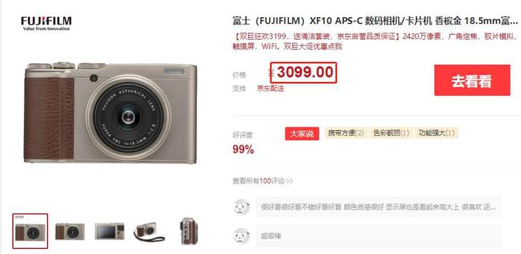 APS-C画幅卡片机 富士XF10 京东商城 售价:3099元