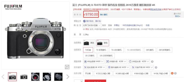 2610万像素高速旗舰微单 富士X-T3 京东商城 售价:9790元