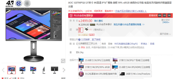 27英寸、4K分辨率,并具有高素质色彩表现以及人体工学支架的AOC U2790PQU显示器只要2499元,放眼目前27英寸、4K分辨率的专业设计显示器市场,这个价格真的非常诱人。