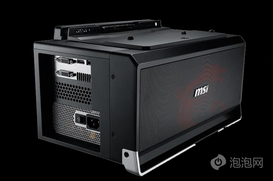 而微星GS30配备的显卡扩展坞完全属于微星笔记本量身定制版外接显卡,甚至可以说是一个功能齐全的小型“工具箱”,具备音响、机械硬盘、机身供电等多种功能,但这款显卡扩展坞在使用中必须将笔记本放在显卡扩展坞上方的底座上,而且不支持笔记本内屏显示,就显得十分鸡肋。