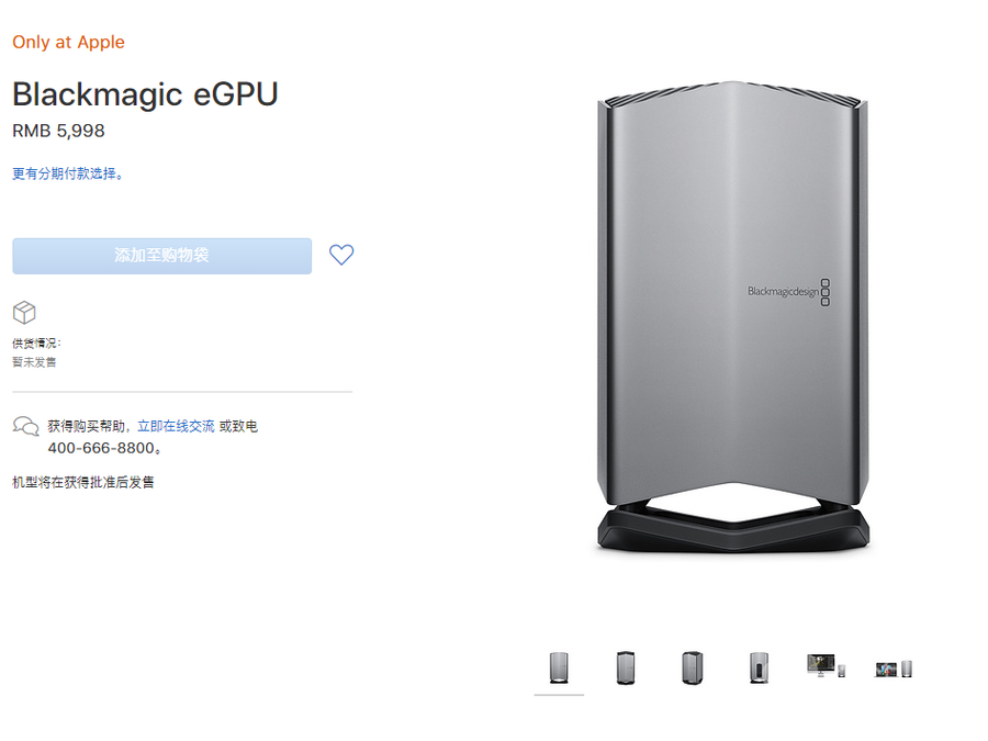 2018年7月,苹果官网在更新了最新的MacBook Pro产品后,同步更新了Mac专属显卡扩展坞。这是雷电3接口的研发者之一苹果公司自家生产的首款显卡扩展坞。在技术上也是诚意满满,两个雷电3接口,使用最新的固件版本26.3,意味着玩家可以同步连接5k显示器做视频输出。唯一遗憾的这款显卡扩展坞为内置“RX 580”显卡,并不能更换,同时虽然宣称Windows系统同样可以使用,但在众多评测媒体测试后发现,并无法识别显卡驱动,这就意味着这款代表着“原厂”产出的显卡扩展坞暂时只能是Mac用户手上的宝贝。