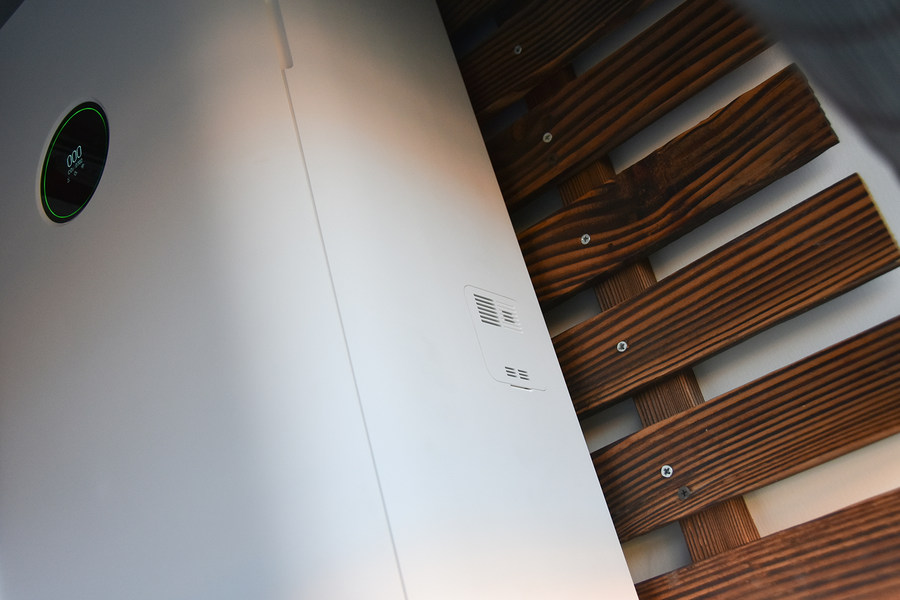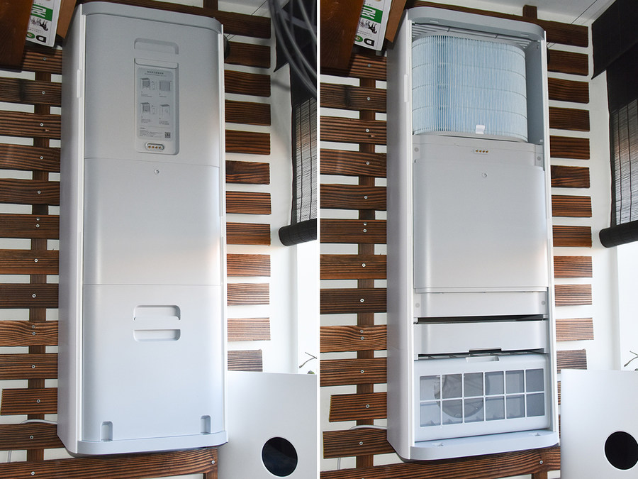 体积并没有想象中那么大,长宽高分别是365 × 230× 970 mm,比米家空气净化器MAX(386 × 386 × 965mm)还要小一些,另外230mm的厚度挂在墙上不会过于突兀,而且它的边角弧度比较大,在局促的空间可以避免磕碰。