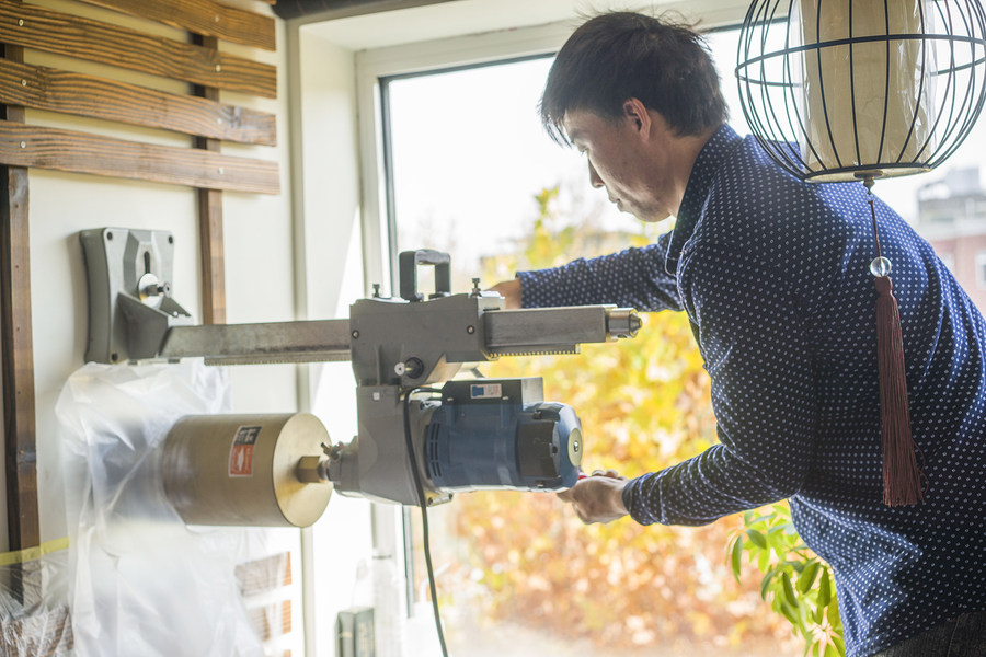 在墙上打洞是个大工程,需要用专业的水钻打孔,安装下来差不多需要一个小时的时间。因为打孔时会用上防尘袋,不会把墙面弄脏,也不用担心家里变得“尘土飞扬”。
