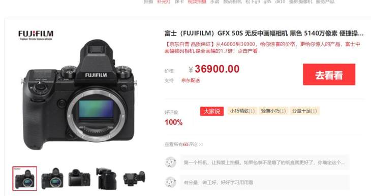 5000W像素中画幅无反 富士GFX 50s 京东商城 售价:36900元
