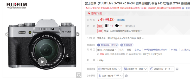 胶片模拟4K视频拍摄富士X-T20京东商城售价:4999元