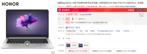 12月13日消息 ,今天是荣耀京东2018年终大促的最后一天,荣耀 MagicBook 锐龙版14英寸笔记本京东秒杀大促直降至3687元,日常售价3999元,送官方169元鼠标。叠加30元优惠券,实付3657元。