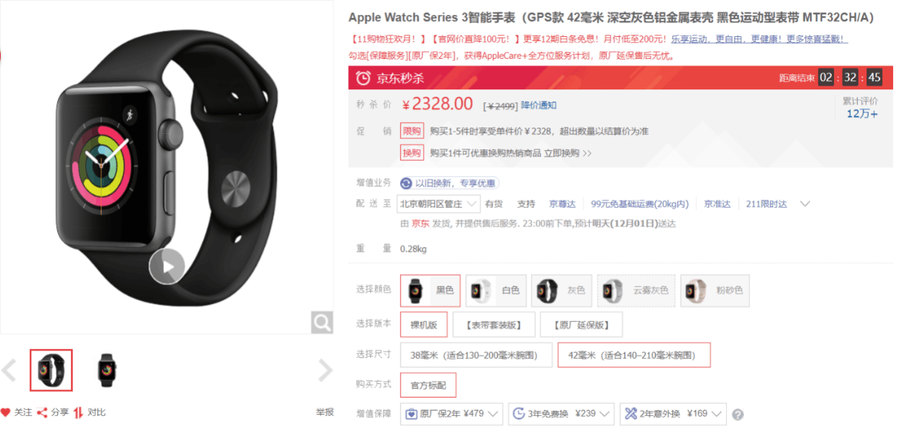 今日苹果京东开启购物狂欢活动,Apple Watch Series 3直降171元仅需2328元!